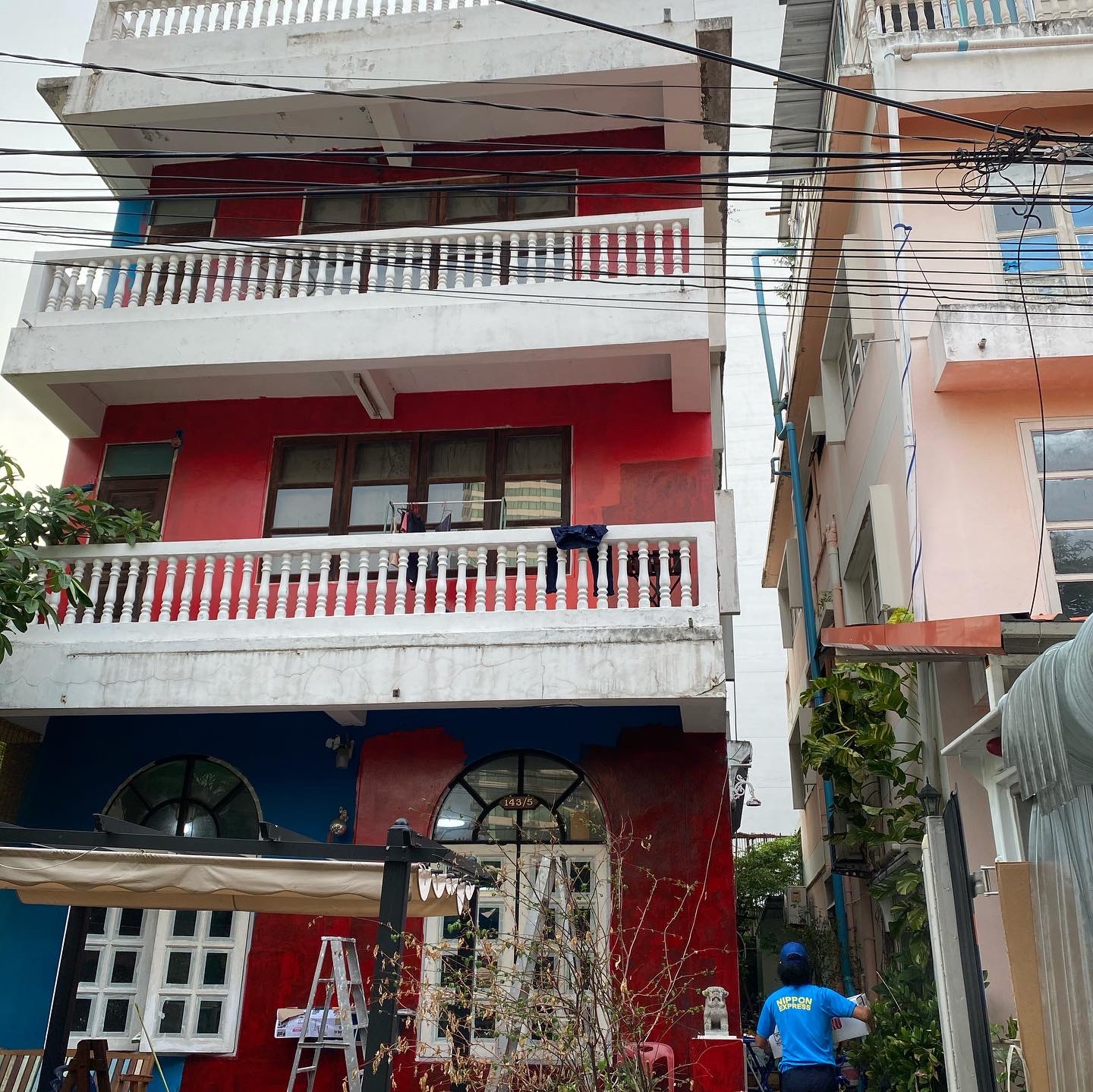 当店は、トンロー ソイ 7にある4階建ての赤色と白色が特徴の建物でございます。