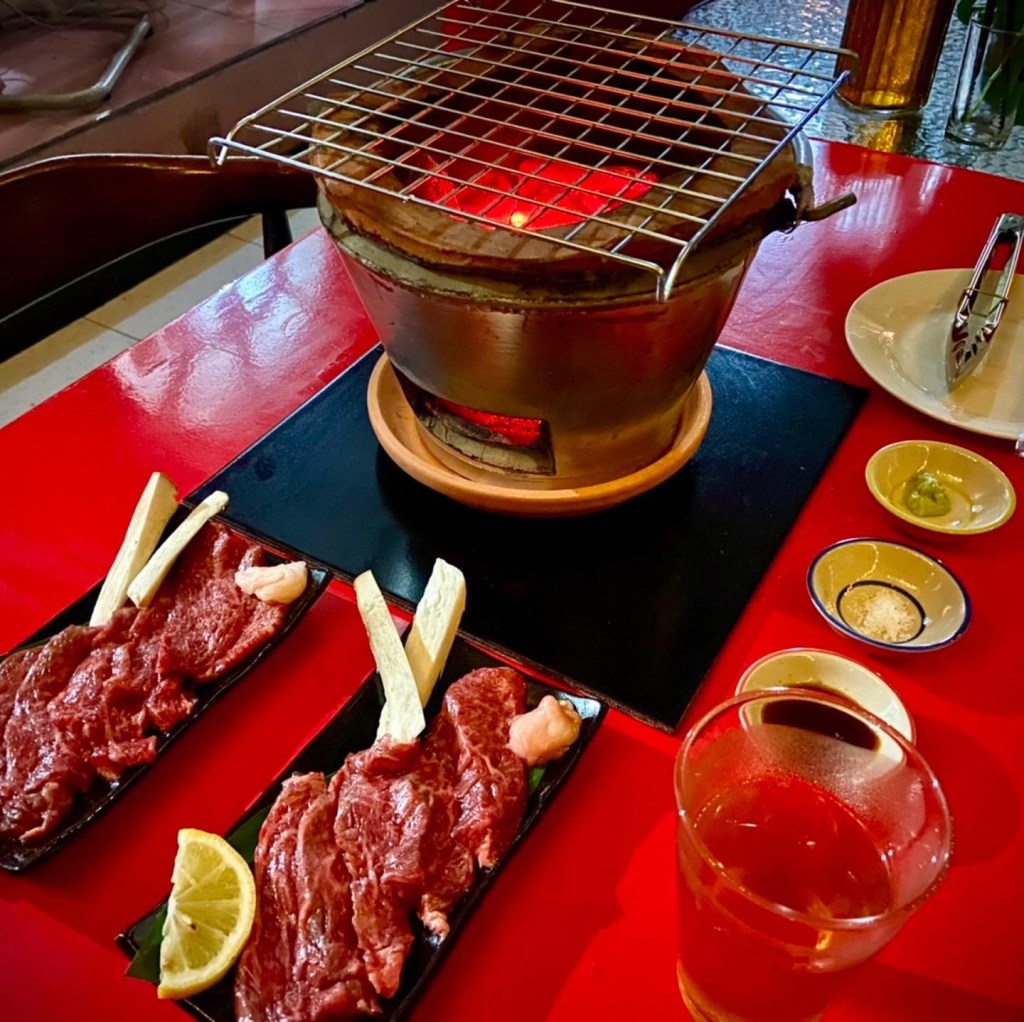 食べ方は、和牛を堪能して頂けるように、『炭火』で焼いていただき、『塩』と『ワサビ』で勧めて提供しております。